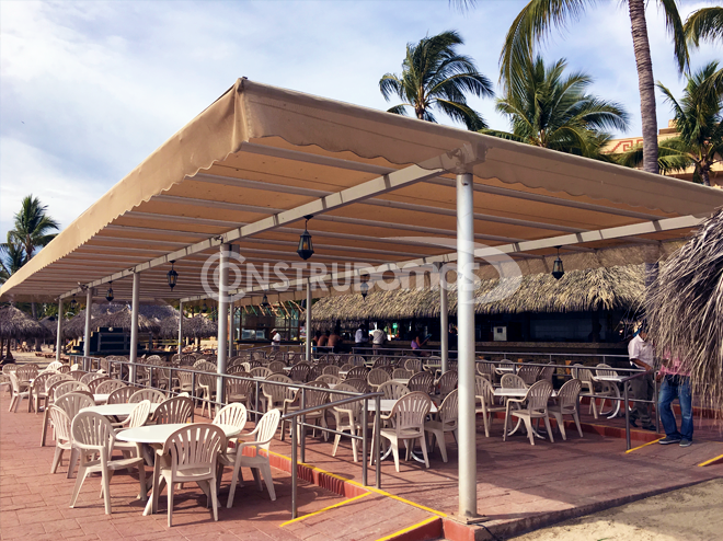 En Construdomos Fabricamos estructuras de acero  especiales para la instalación de Malla-Sombra y lona, distribuimos una amplia gama de Malla-Sombra y lona nacional y de importación.