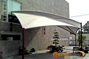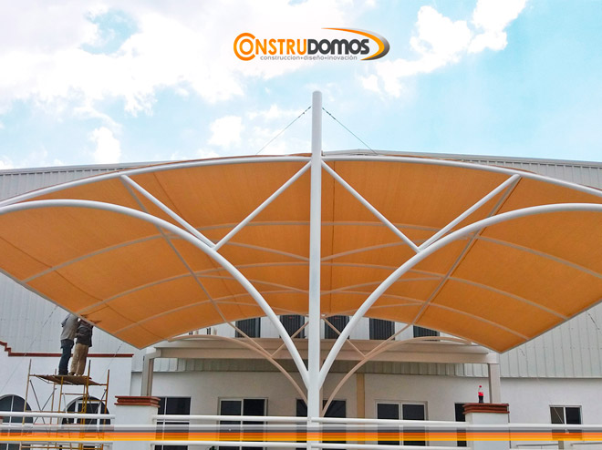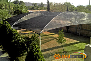 En Construdomos Fabricamos estructuras de acero  especiales para la instalación de Malla-Sombra y lona, distribuimos una amplia gama de Malla-Sombra y lona nacional y de importación.